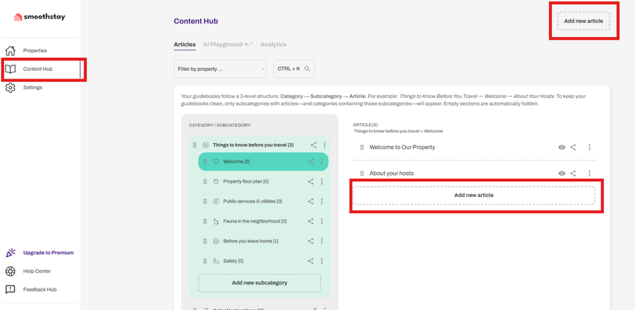 Guidebook articles provide guests with essential info—from local dining picks to safety instructions—organized in an easy-to-browse structure. Each article lives under a Category and Subcategory, keeping your content clean, relevant, and simple to update.