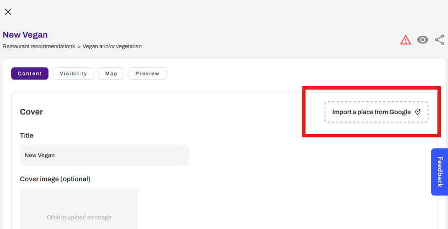 (Optional) Click Import a place from Google to autofill venue details for restaurants, shops, attractions, etc., ensuring accurate info.
