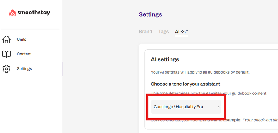 Go to Content > AI Chatbot > AI Playground in your SmoothStay dashboard.
